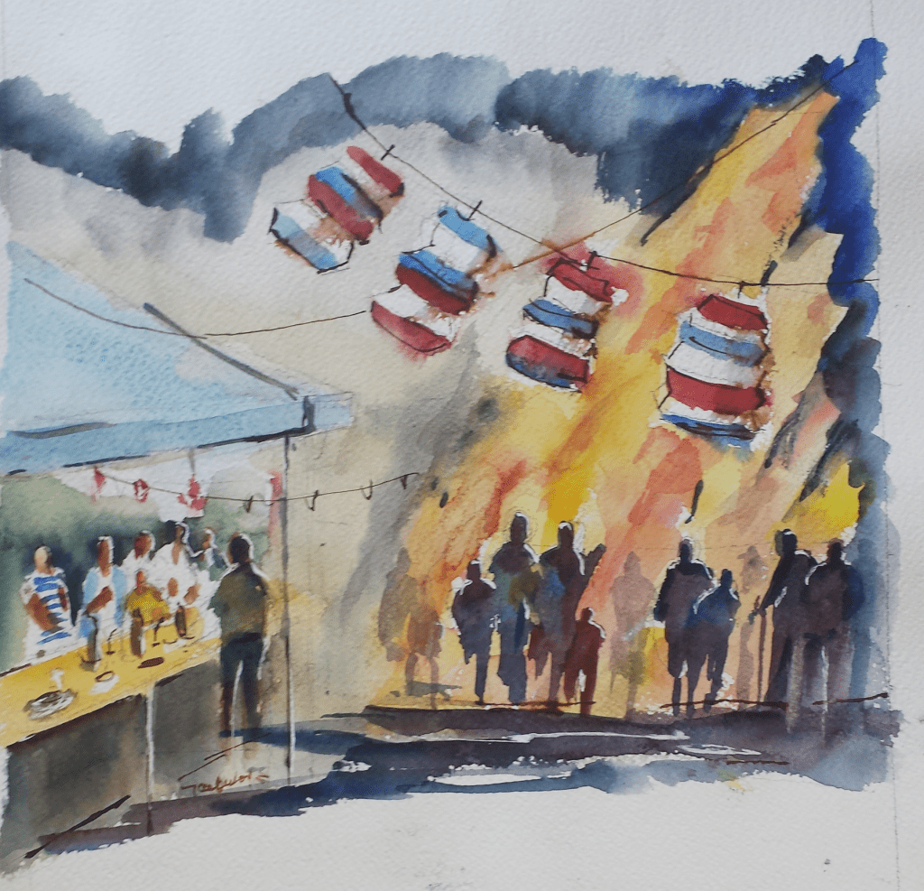 Le soir, on peut y pique-niquer entre amis, jusqu’à la retraite aux lampions, avant le traditionnel feu, que l’on allume à la nuit tombée.