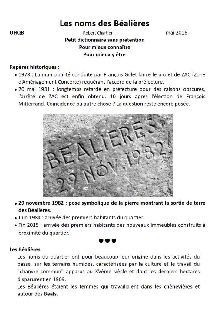 Les 10 ans du quartier ont donné lieu à un certain nombre de manifestations et à un numéro « Spécial 10 ans » du Béalien. A découvrir dans les numéros 50 et 51, sur cette page.